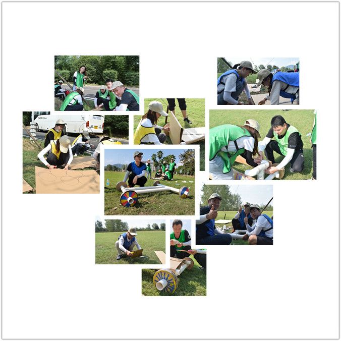此次活動(dòng)打破以往的常規(guī)培訓(xùn)項(xiàng)目,開展主題拓展訓(xùn)練—F1賽車主題活動(dòng),分組進(jìn)行,通過(guò)參加環(huán)游世界杯挑戰(zhàn)賽贏取道具和積分,購(gòu)買賽車零件,打造屬于自己的賽車。活動(dòng)首先由歡快的“好、很好、非常好、耶”、“找大王”等破冰活動(dòng)拉開序幕,大家迅速的融入團(tuán)隊(duì),建立信任。緊接著在拓展教練的指導(dǎo)下大家被分成了三組,各組確定隊(duì)長(zhǎng)后經(jīng)過(guò)一番頭腦風(fēng)暴,設(shè)計(jì)好隊(duì)名、LOGO、口號(hào)及隊(duì)形并逐一精彩亮相。